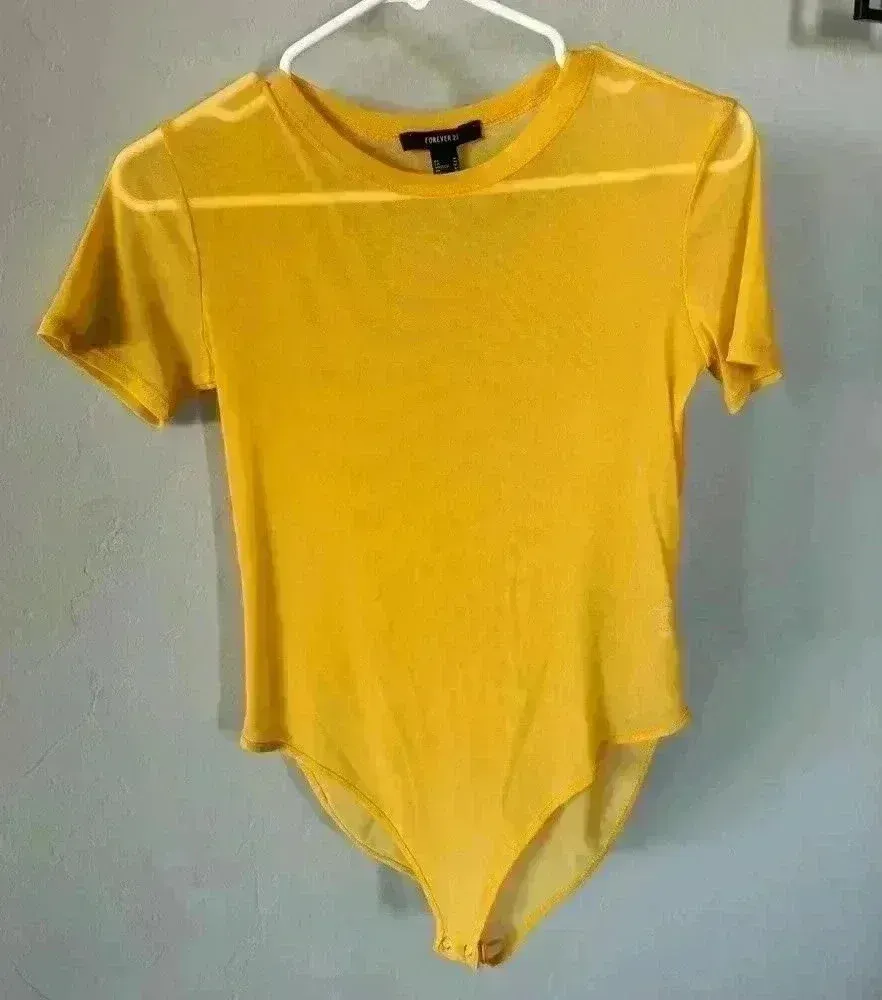 Forever 21 sheer mustard yellow bodysuit size M Size M - $13 - From Marcy