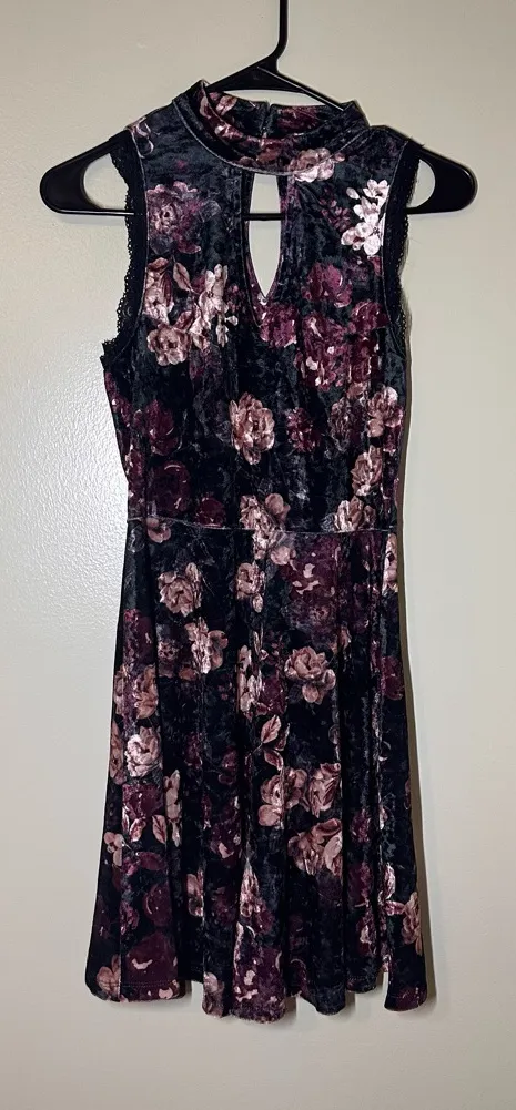 Chic mini dress with floral pattern. Sleeveless design. Perfect for casual outings.
