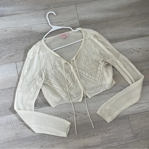 xhilaration Vintage Pointelle Crop Cardigan in the color Cream. Lightweight knit fabric with pointel... Show more