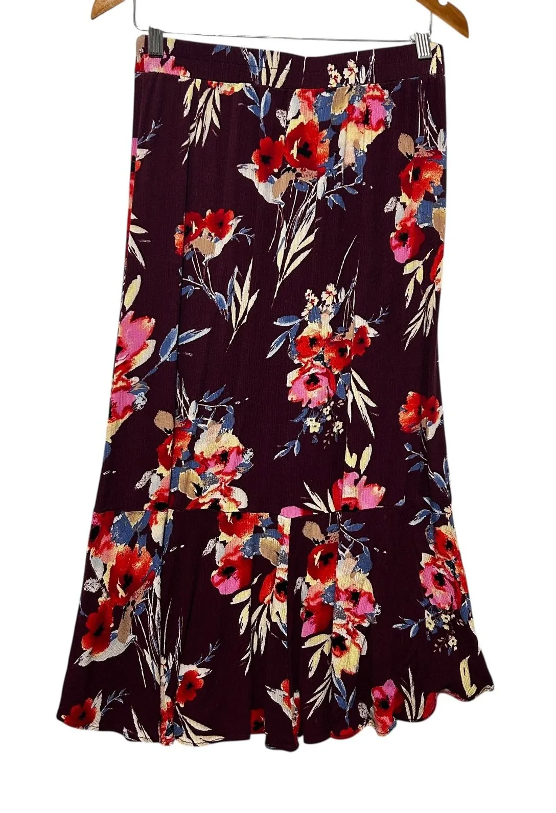 Xhilaration Floral Print High Low Ruffle Hem Skirt M Maroon Floral Whimsigoth Great Pre-Owned Con... Show more