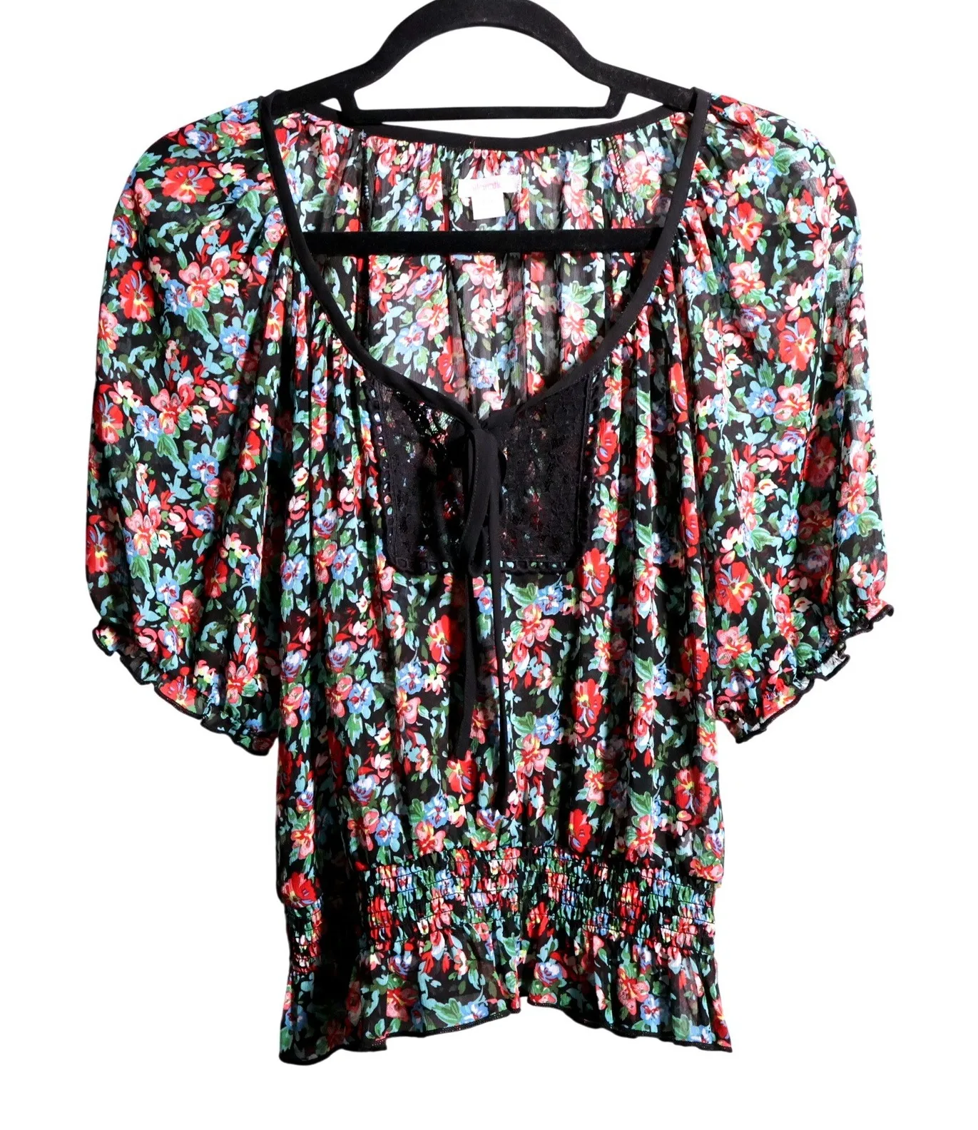 Keywords: sheer, peasant, boho, romantic, summery, lightweight, lace trim, puff sleeve, printed, cas... Show more