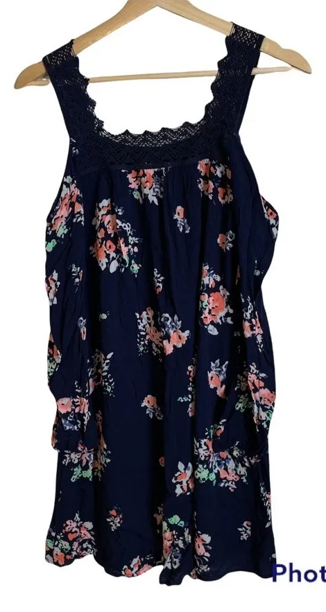 XHILARATION Longsleeve Cold Shoulder Floral Navy Dress Lace Trim Extra Small XSApproximate Measureme... Show more