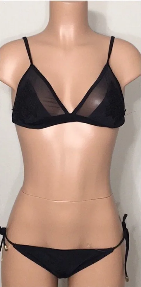 Beautiful sexy net and lace bikini top. Has adjustable strap on shoulders and around the back. Soft... Show more
