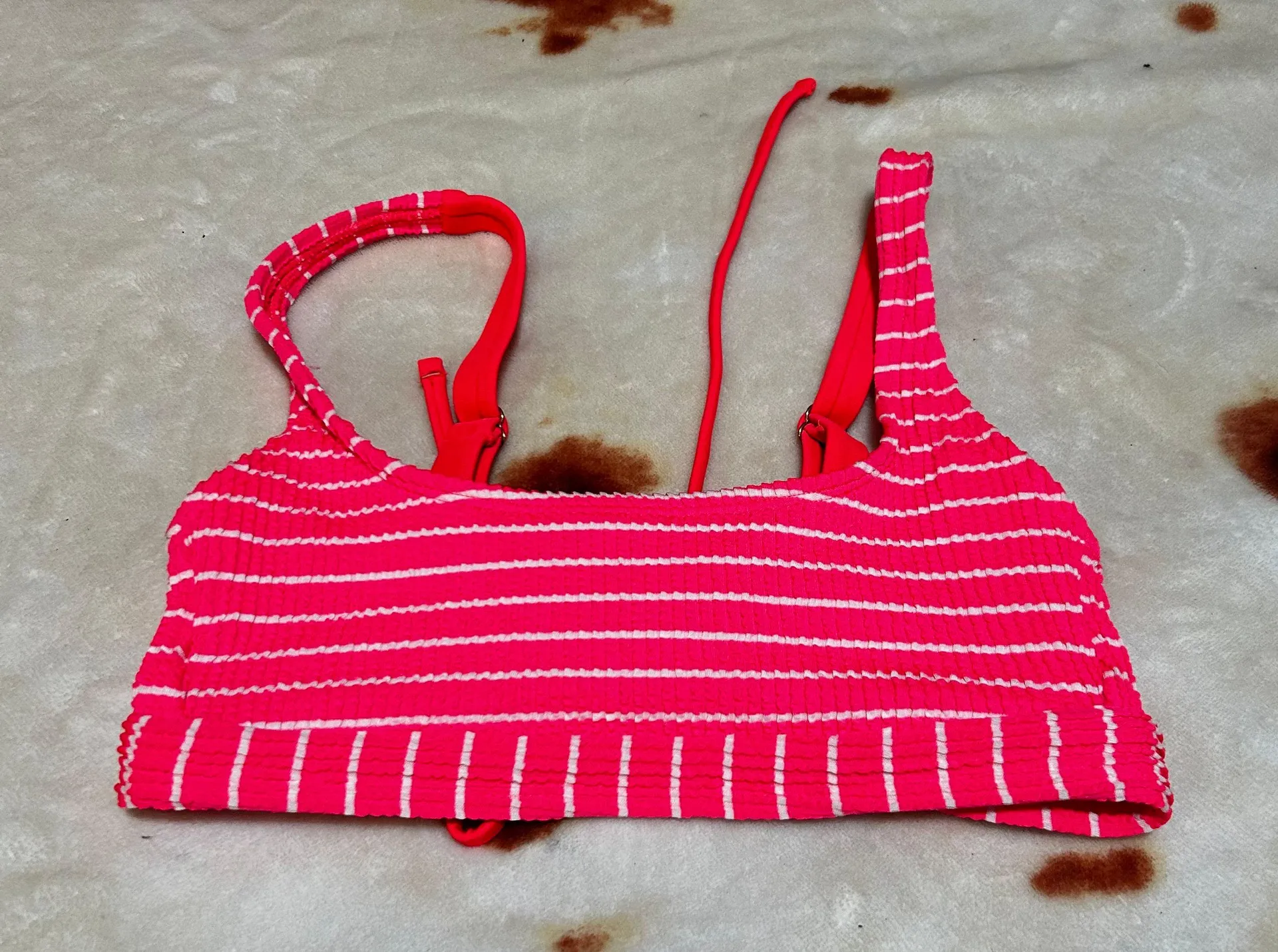 Hot pink bikini top. Striped bikini top. Size small. So cute! Worn once.