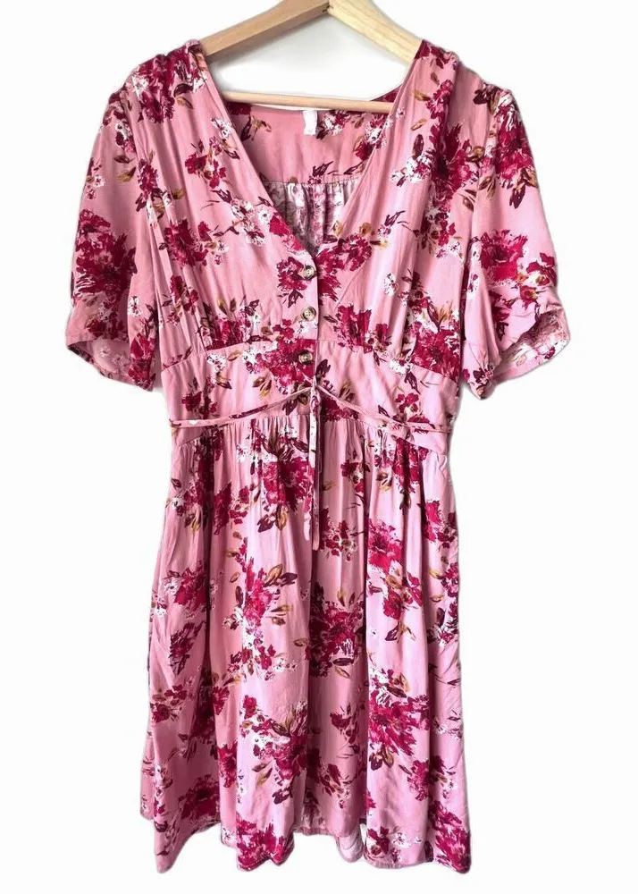 Women's Pink red floral dress pockets Size L short sleeve Size L Color Pink red 100% VISCOSE Brand... Show more