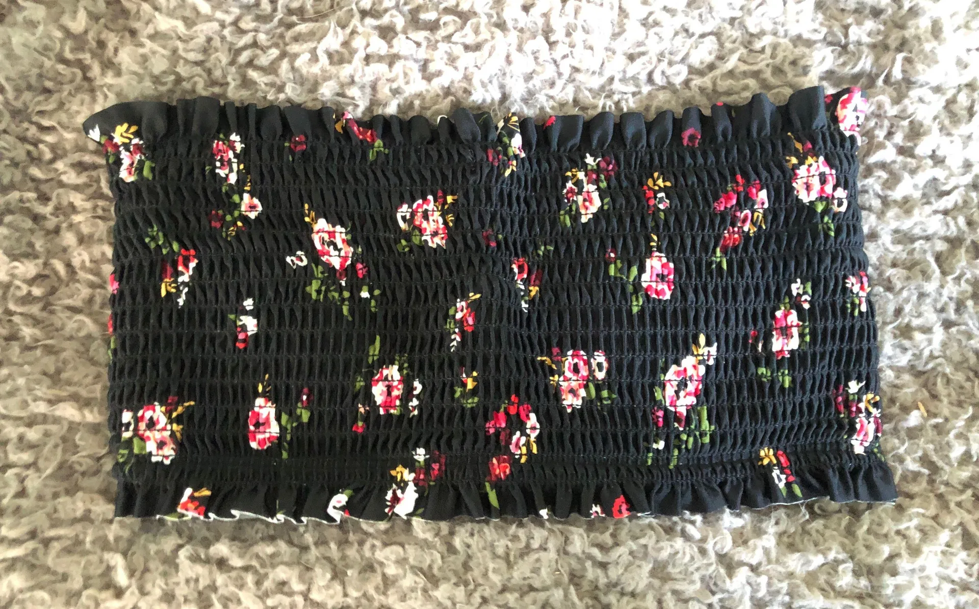black with flowers. has underwire to help it stay up. great condition, worn once.