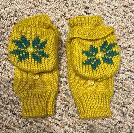 Xhilaration Women's Yellow with green snowflake acrylic Knit Flip gloves Thumbs also flip