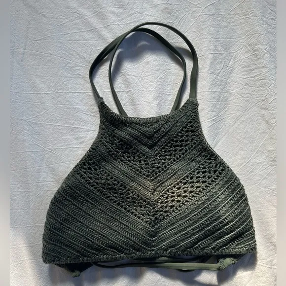 Xhileration high neck knit olive green swim top Crisscross back tie size small Comment with a... Show more