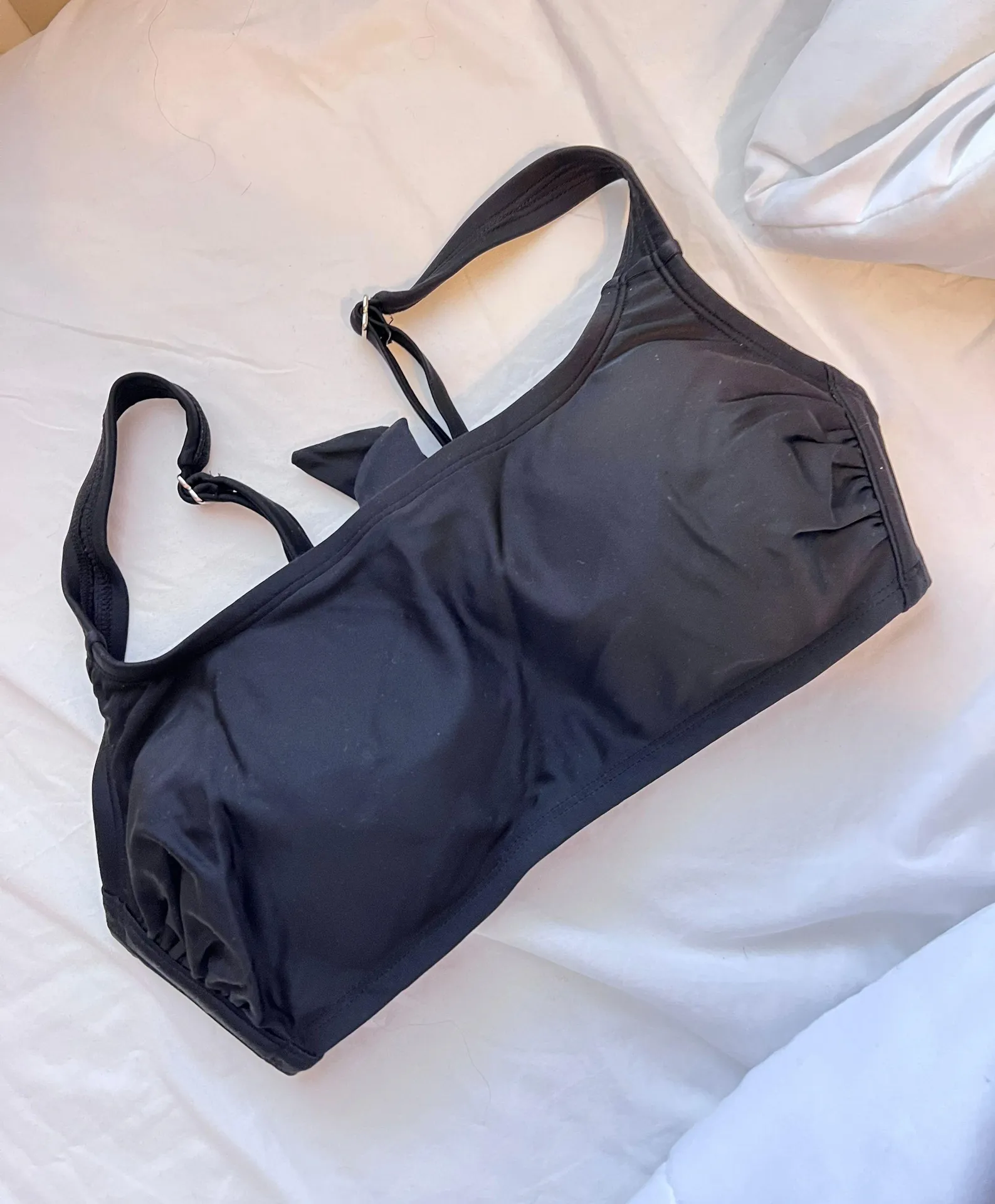 black bikini top ties in the back SIZE D/DD fits like a large or medium but has extra chest room
