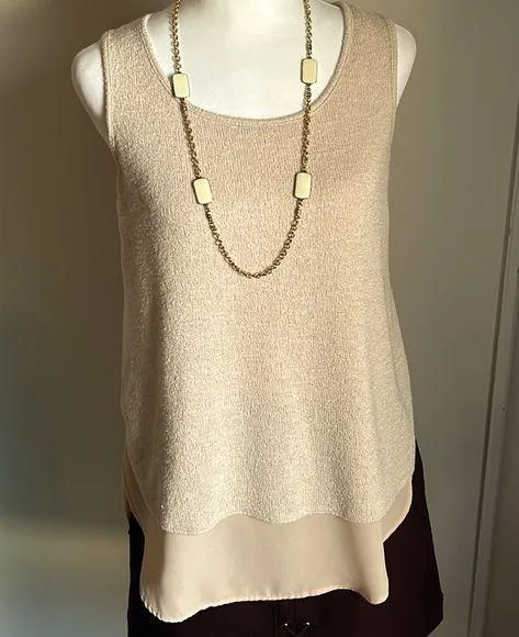Excellent preloved condition - Bar III Chiffon With Sweater Overlay Tank Blouse Blush pink tank blo... Show more