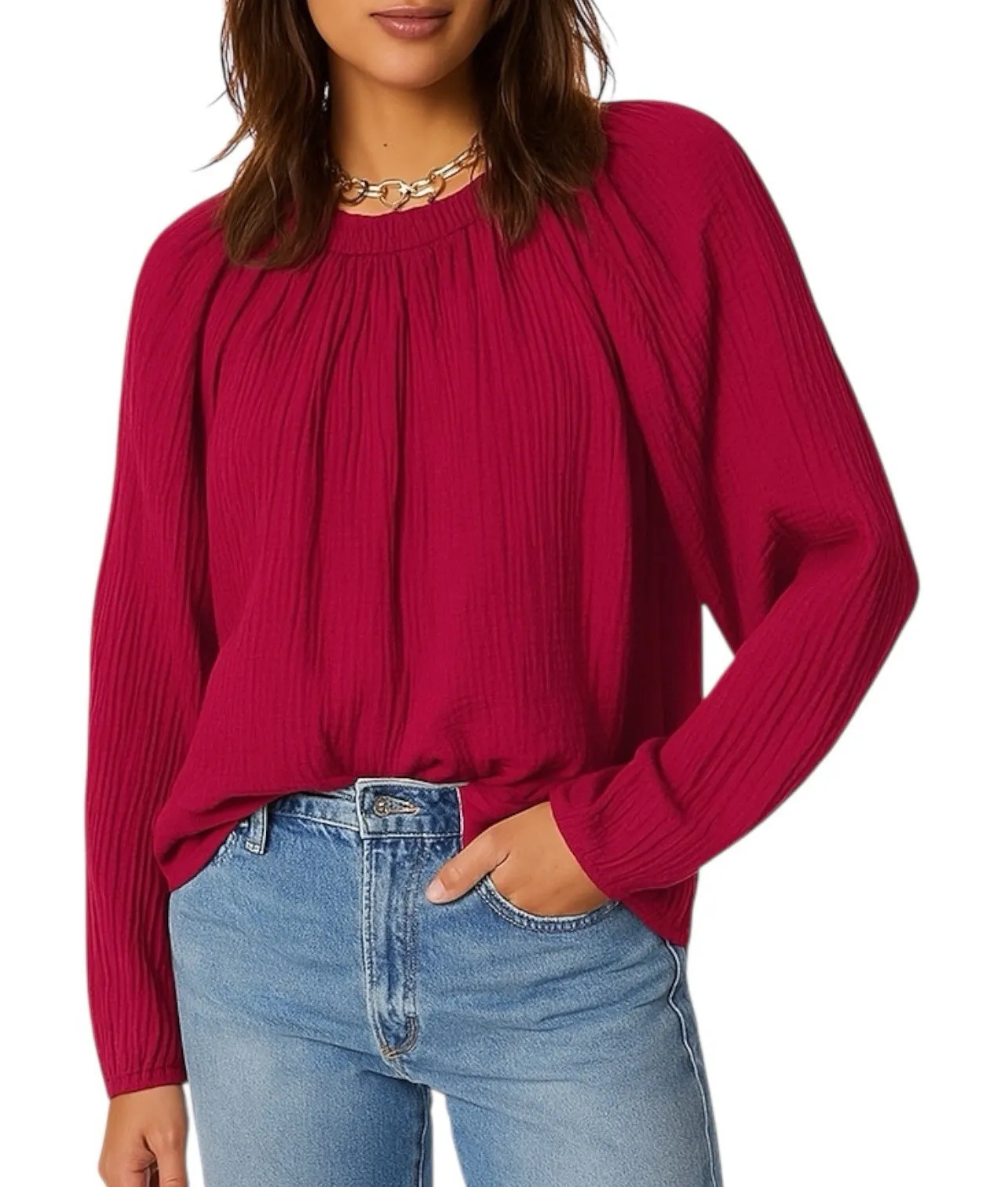 XiRENA Naomi Chelsea Gauze Cotton Long Sleeve Blouse Top‎ Peasant Beachy Boho XS Pink - $57 - From Patchworked