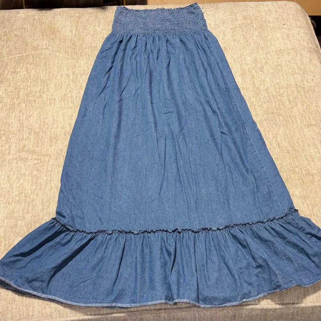 XL smocked top denim jean maxi dress ruffle bottom JFW BRAND 100% cotton Blue - $18 - From olivia
