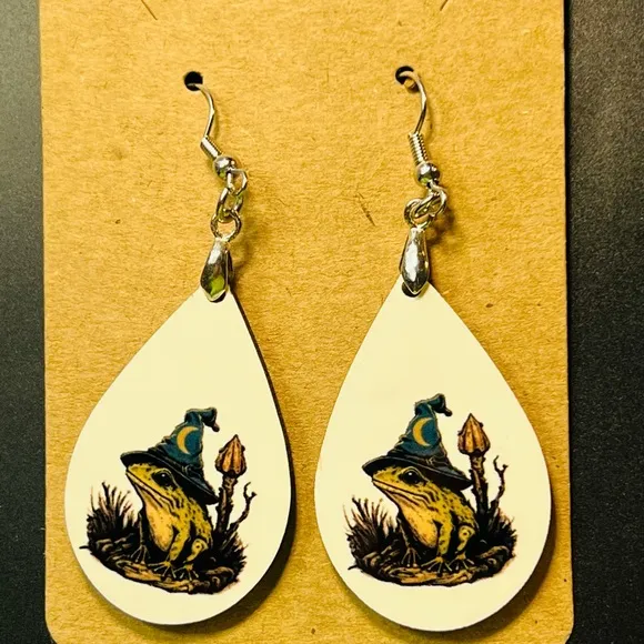 Frog Wizard Teardrop Dangle Pierced Earrings New - $9 New With Tags - From Shari