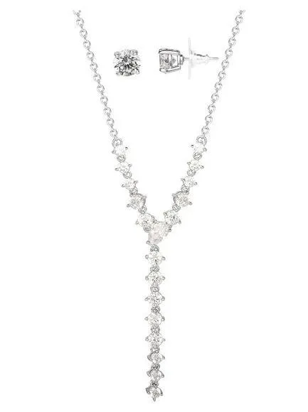 Show your style with this fashionable Fine Silver Plated cubic zirconia Y necklace and earring set.... Show more