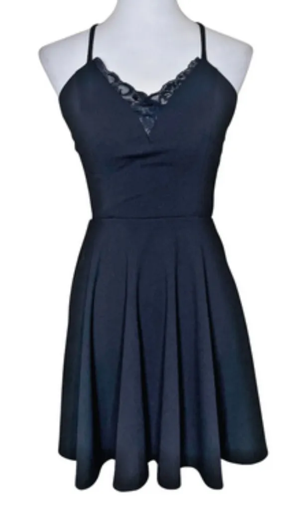 Features: This stunning Little Black Dress (LBD) is perfect for parties, clubbing, dates, or a night out. It features a flattering fit-and-flare skater silhouette with a plunging V-neckline adorned with delicate black lace trim. • Style Profile: Goth Girl, Whimsigoth, Gothic, Goth Glam, Vampirecore, Punk, Alt Fashion, Alternative, Edgy, Y2K, 90s Style, Emo, Grunge, Dark Academia • Flaws: No Holes, stains, or tears (Excellent pre-owned condition) • All measurements are approximate PTP: 13.5' Waist: 12' Length: 33' Happy to answer your questions! Super Fast Shipper!