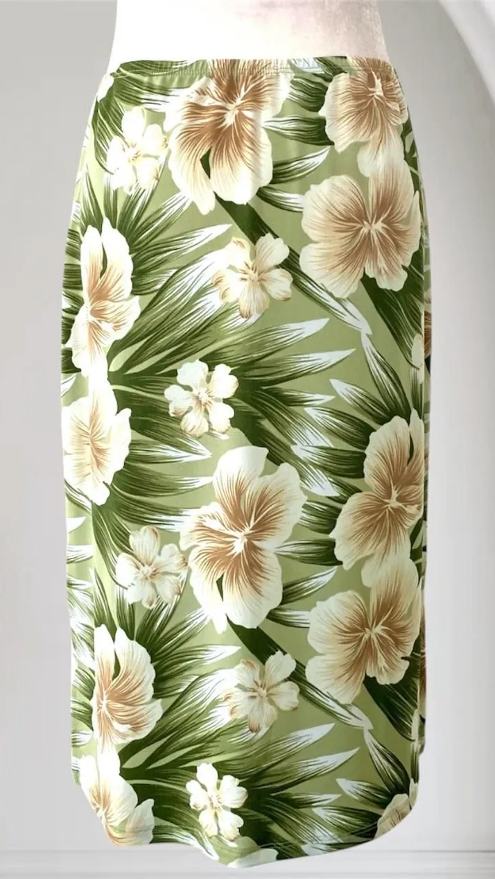 🌸 Early 2000's Hawaiian Midi Skirt 🌸 ༓ Brand: XXI Made in USA Paper Tag ༓ Size: L ༓ stunning green tan hawaiian flower midi skirt ༓ stretchy waist, small slits on sides ༓ such euro summer fairy nymph mermaid siren vibes Flat Measurements: ༓ single waist flat 13.5" to 24" ༓ length 24" Tags: #mermaid #whimsygoth #fairy #boho #whimsical