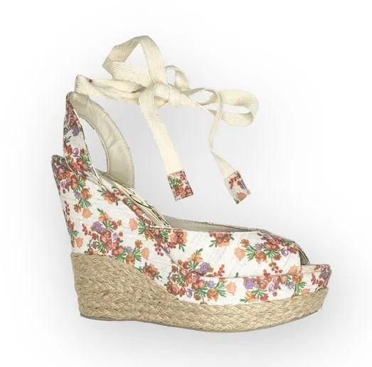 Sergio Zelcer Floral Print Ankle Strap Wedge Sandal Espadrilles in Cream Size 10 MSRP $148 Brand... Show more