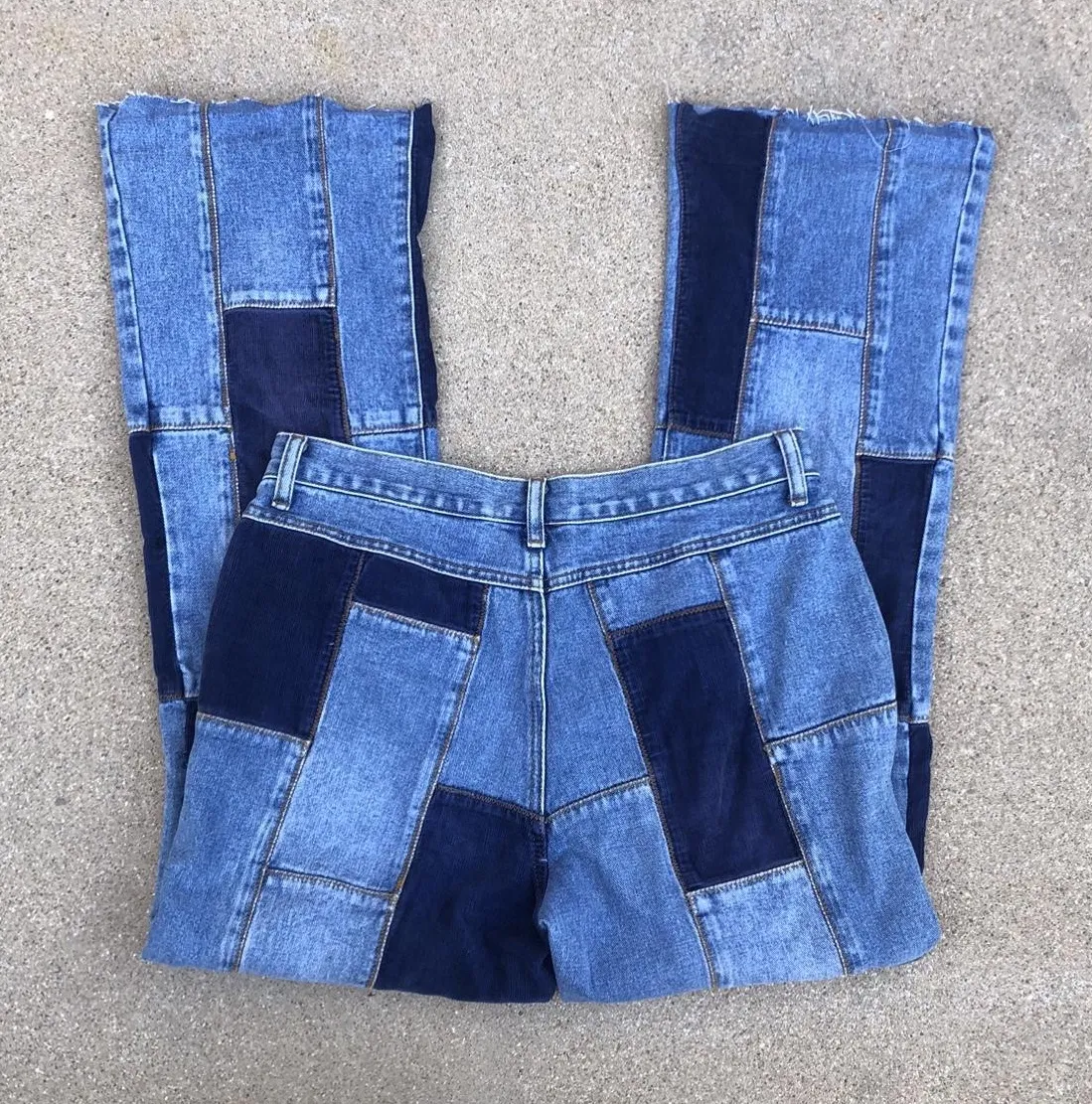 Y2K 2000s Denim Patchwork Boho Indie Mid Rise Wide Flare Bootcut Bell Bottom Jeans #Grunge #Western #Granola #Punk #Skater #Festival #Cottagecore Blue Size 8 - $40 - From Victoria