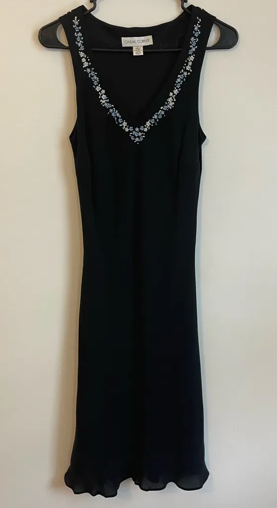 Y2K 90s Sz 6 Casual Corner Annex Black Floral Silk Dress Phoebe Friends Romantic - $32 - From Jenn