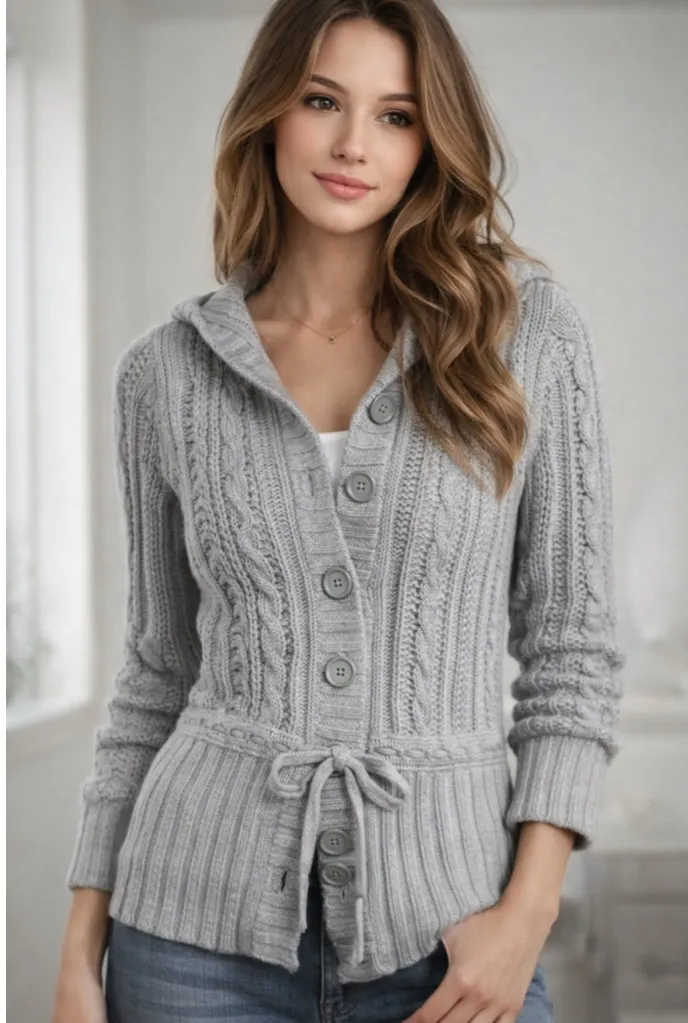 Soft + cozy Abercrombie & Fitch cable knit hooded cardigan in a neutral grey — classic early 2000s s... Show more