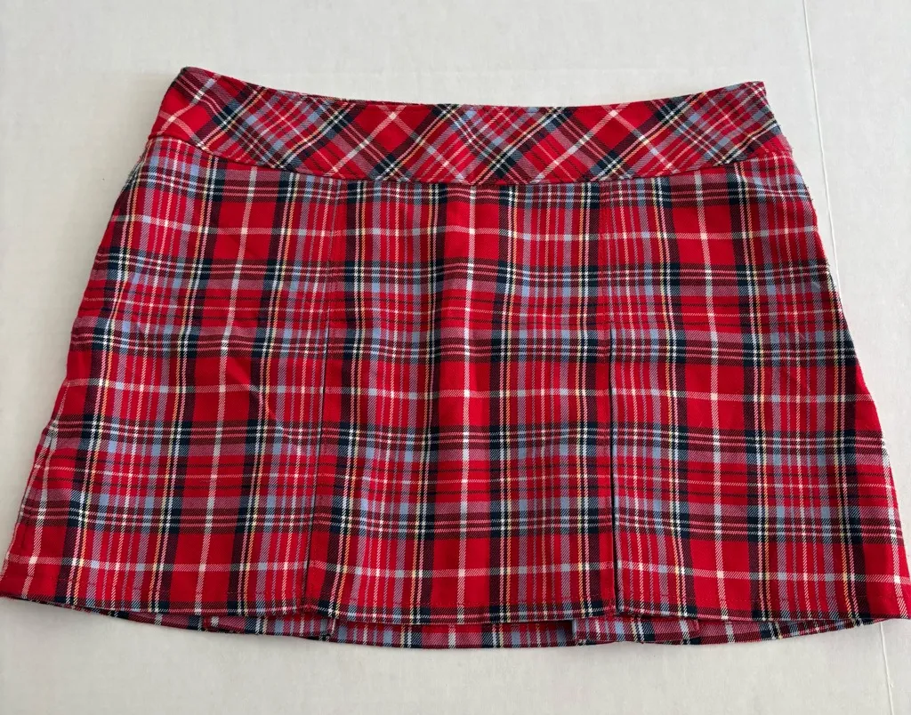Late 90s early 2000s Y2K era Abercrombie & Fitch Tartan plaid pleated mini skirt Red, black light... Show more
