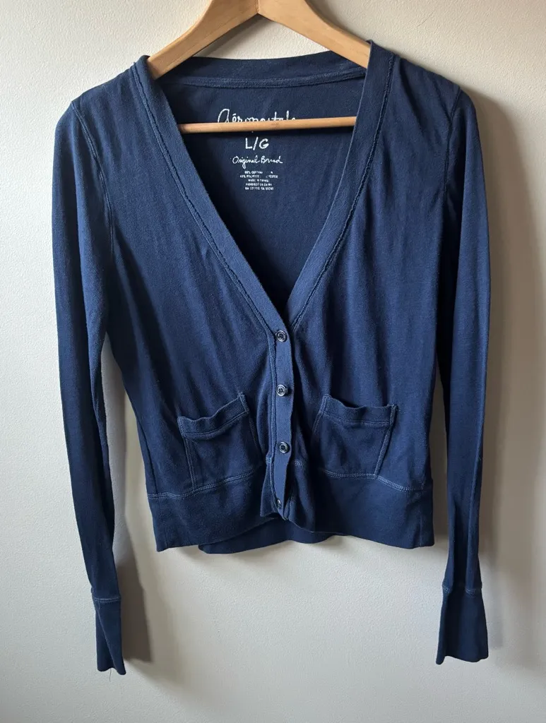 Aeropostale Y2K navy blue button up cardigan. Super cute and very soft fabric! Size L Pit to pit 19... Show more