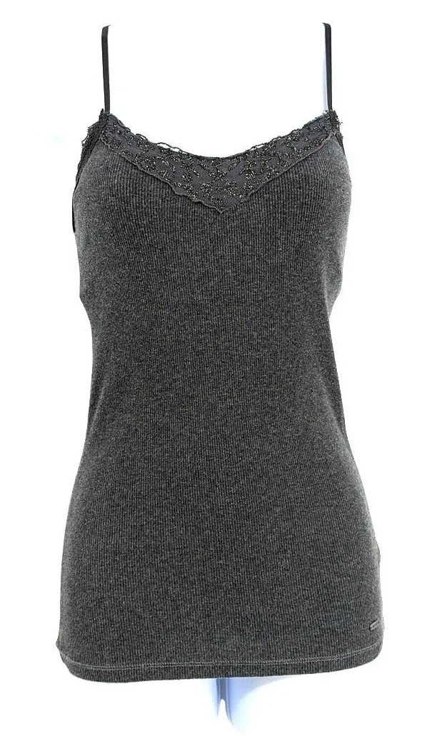 Y2K Aeropostale Charcoal Gray Ribbed Lace Trim Cami Top Bella Swan Coquette