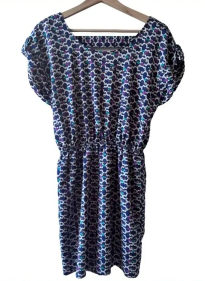 Vintage Akira Chicago mini party dress with sexy back cut out, fits small/medium. Pattern is blue, white, plum and teal reminiscent of “candy wrappers”. Found in excellent condition. Comfortable elastic waistband cinches the waist perfectly for a chunky stylish belt.