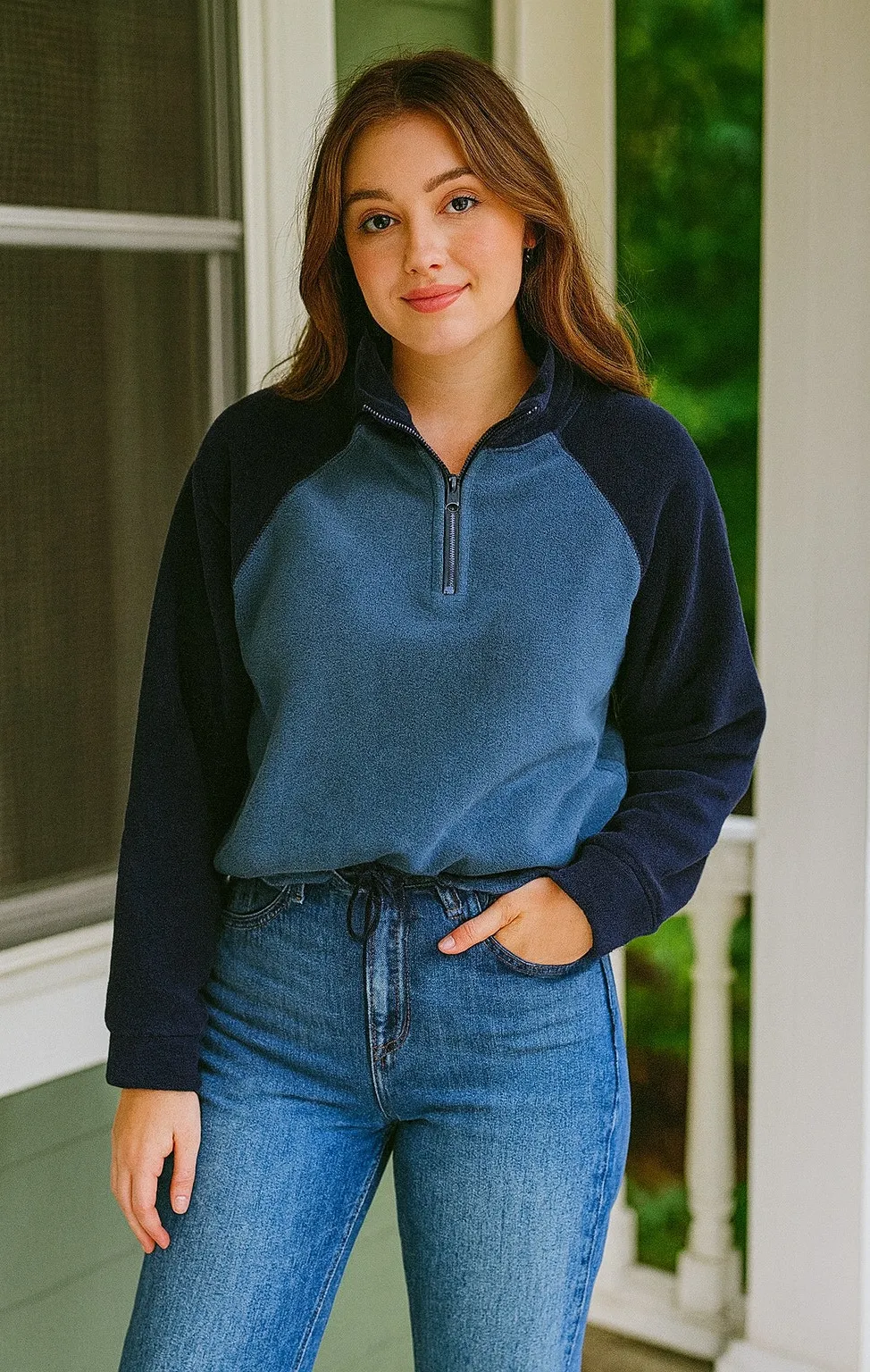 Step back in time with this Y2K vintage American Eagle fleece quarter-zip pullover! This cozy blue f... Show more