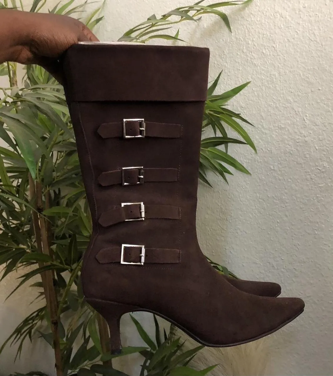 Y2K Baddie Bratz Whimsygoth Brown Real Leather Suede Buckles Pointed Toe Mid Calf Boots Booties Kitten heels Fold Over Cuffed - Size 8B #cyber #punk #academia #preppy #goth #trendy #mcbling 2000s acubi Measurement in pics - $111 - From Victoria