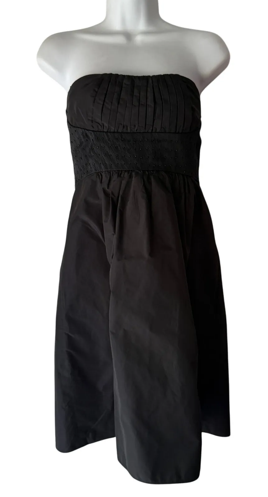 Y2K BCBGMAXAZRIA Strapless Black Dress S Pleated Beaded Waist Party Midi • Brand: BCBGMAXAZRIA • S... Show more