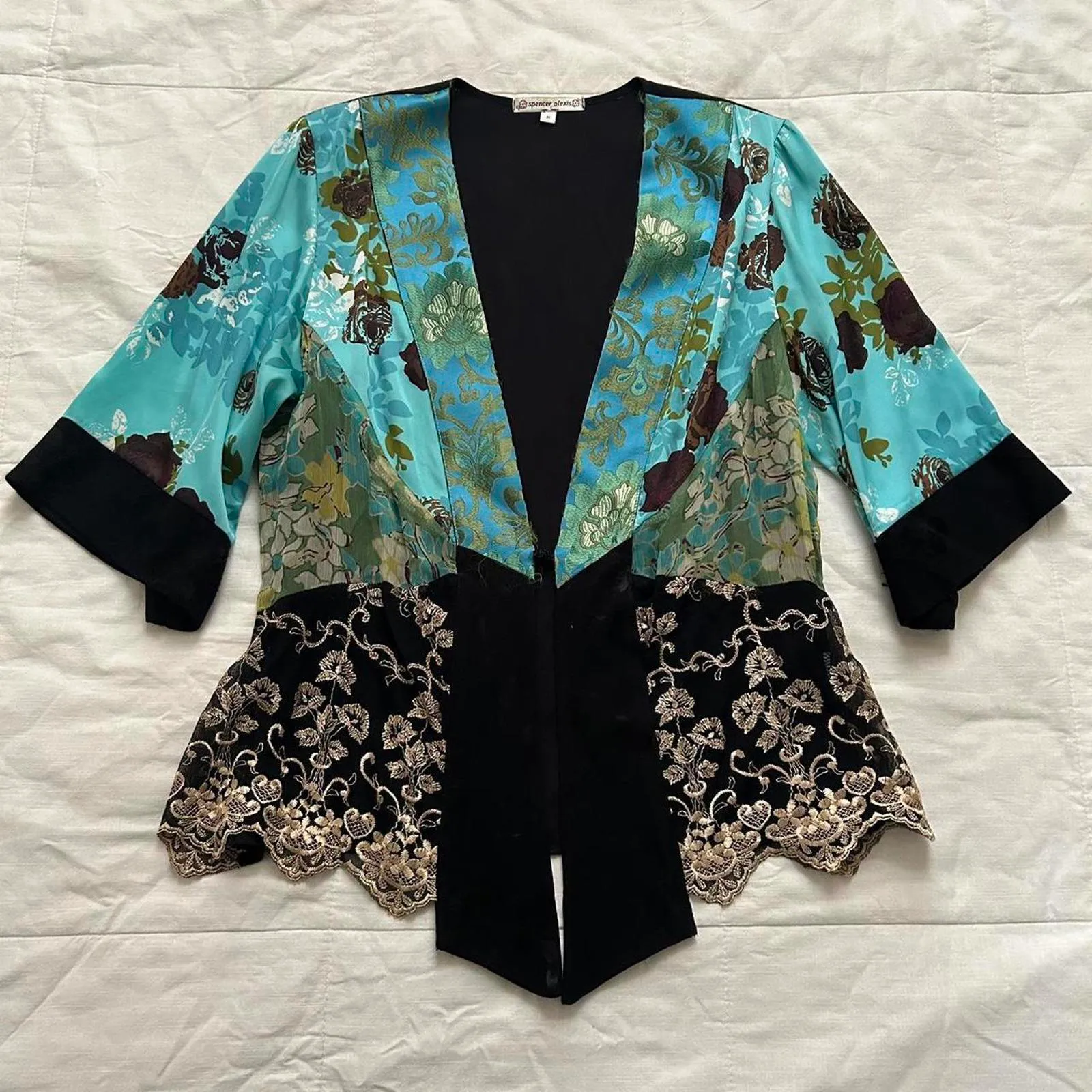 Y2K Blue and black vintage silk and lace kimono with floral and lace details Size M - $45 - From Killah