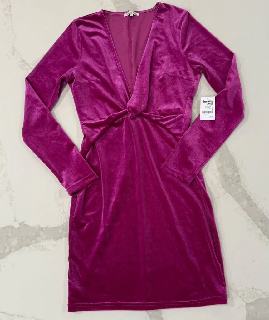 Y2K Charlotte Russe NWT Velour LongSleeve Plunge Mini Dress Women’s Size Small Magenta Pink Bodyco... Show more