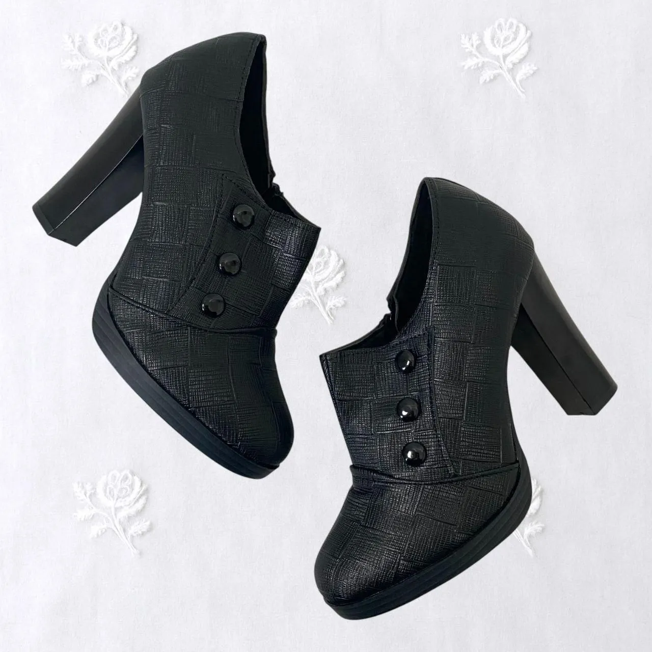 Y2K Office Siren Retro Oxford Heels ༓ Brand: Amazon, New and unworn ༓ Size: EU 39 / US 8.5 ༓ black faux structured leather material chunky Oxford / Mary Jane's ༓ small platform, button design ༓ retro pinup 80s officesiren elegant rockabilly vibes ༓ heel 4" 🧚🏼 bundle for additional discounts Tags: #whimsygoth #90s #vampy #bratty #goth gothic moody dramatic