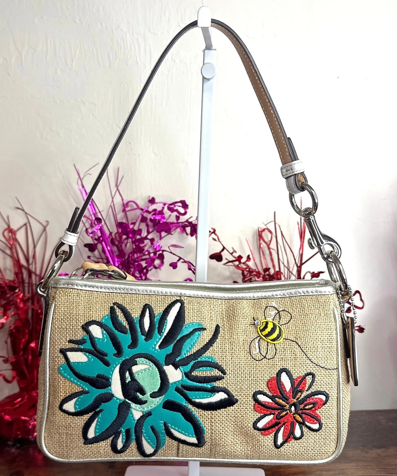 Tan, Multi color, and Silver Trim Beautiful, rare, vintage Coach purse. The cutest leather bees wit... Show more