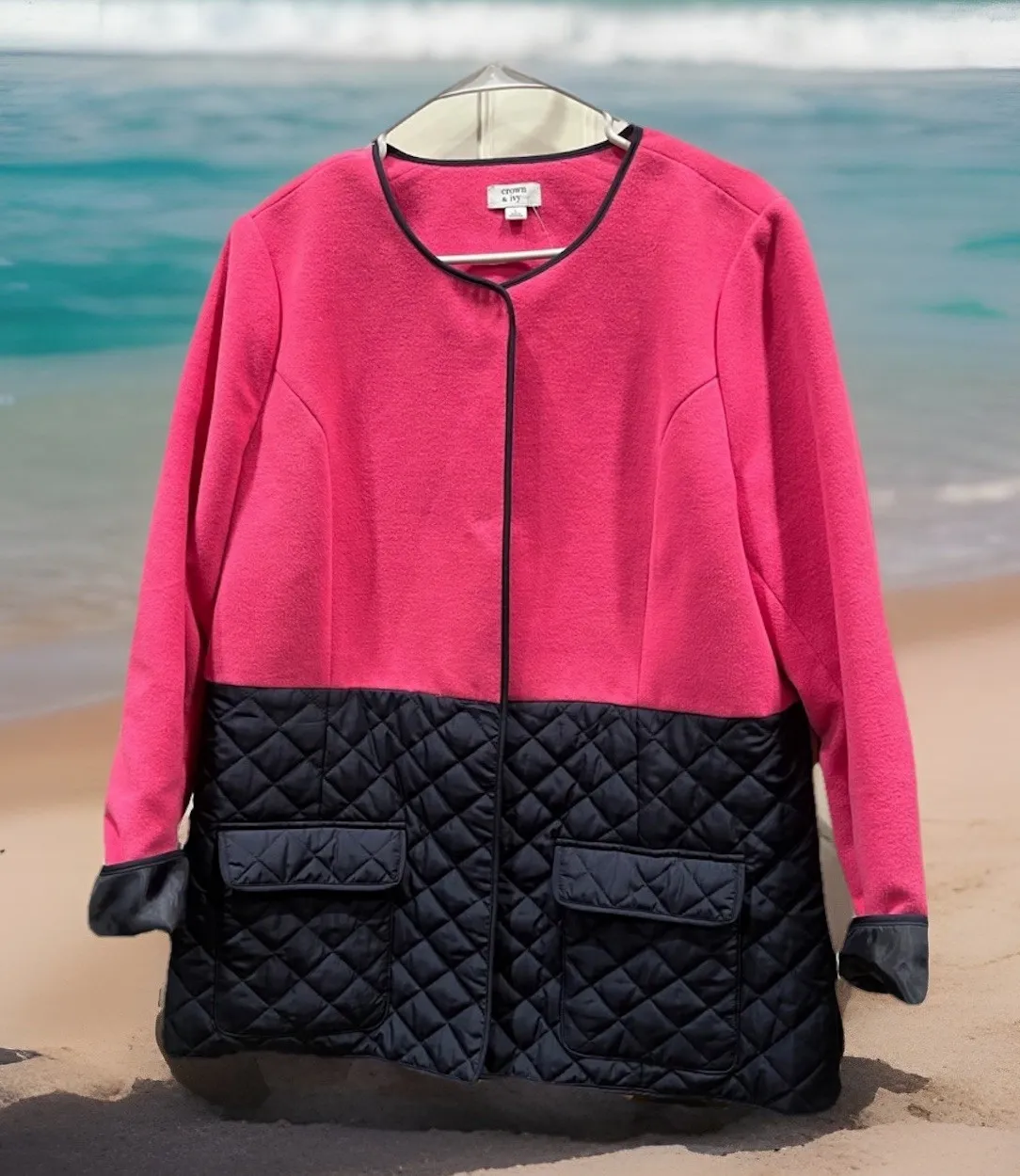 Embrace vibrant style with this striking colorblock jacket. The bold hot pink upper provides a pop o... Show more