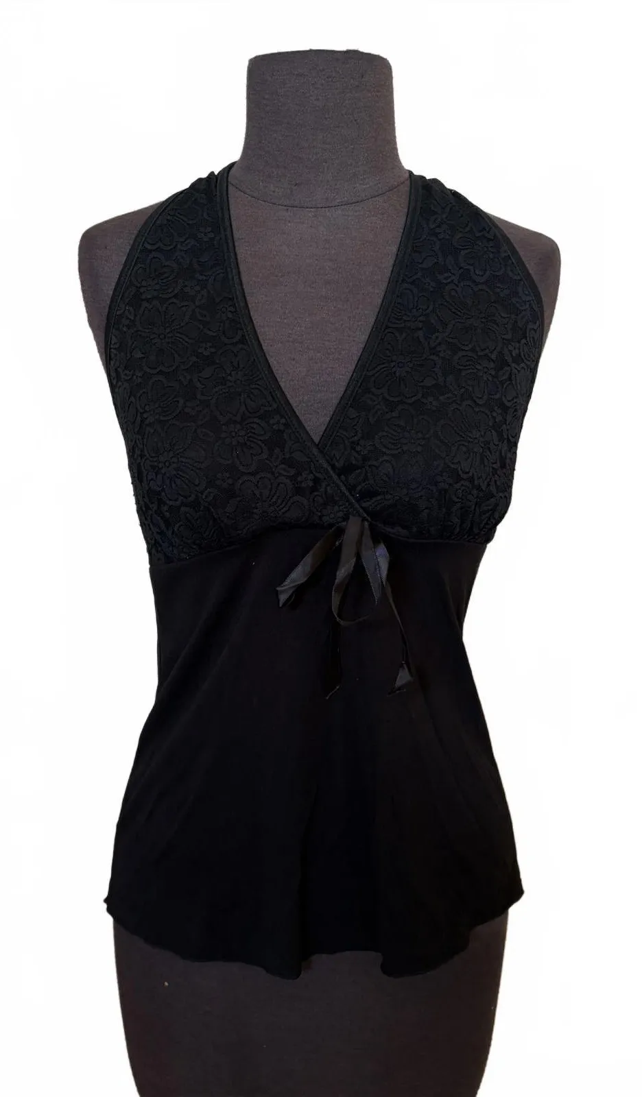 Y2K Dess USA Halter Tank Top Lace Babydoll Grunge Whimsigoth Women's Size Medium Black - $25 - From Allison