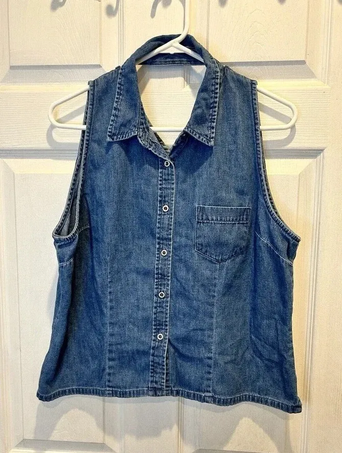 Y2K Faded Glory Jean Shirt Size XL Denim Sleeveless Collared Cutout V-neck Vintage. XL. No flaws. Cu... Show more