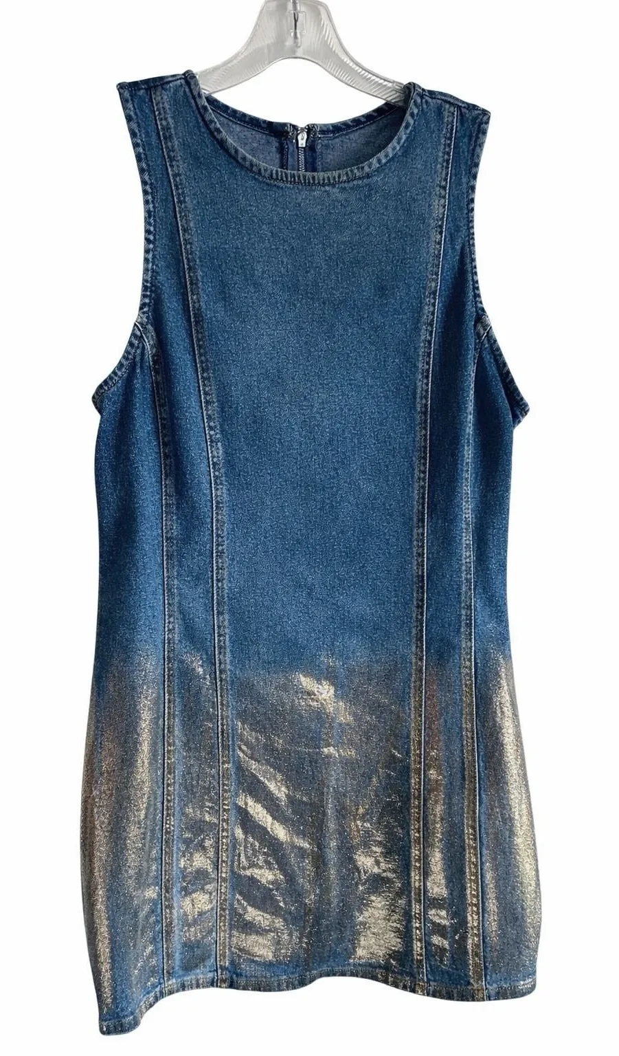 Forever 21 plus size sleeveless denim bodycon dress featuring a unique metallic dip-dye / foil finis... Show more