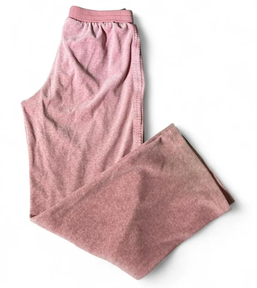 Pink velour track pants offering a relaxed and comfortable fit. Elastic waistband with a subtle drawstring detail and a wide leg silhouette provide a casual yet stylish look. Side seam detailing adds a touch of flair. Perfect for lounging at home or running errands. Please note flaws Keywords: velour, track pants, lounge pants, wide leg, athletic wear, casual pants, comfortable, activewear, streetwear, athleisure, pink pants, sporty All clothing are cross posted, #RelaxedFit #Y2K #Retro