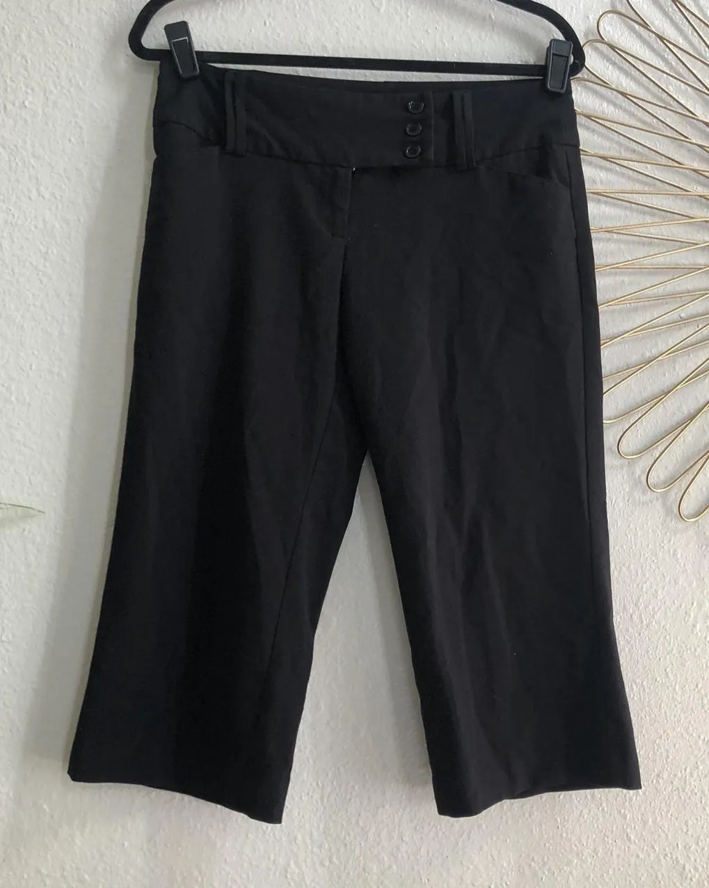 Y2K Goth Grunge Office Siren Preppy Academia Black cropped pants capris culottes low rise 2000s wide waistband Measurements in pics - $40 - From Victoria