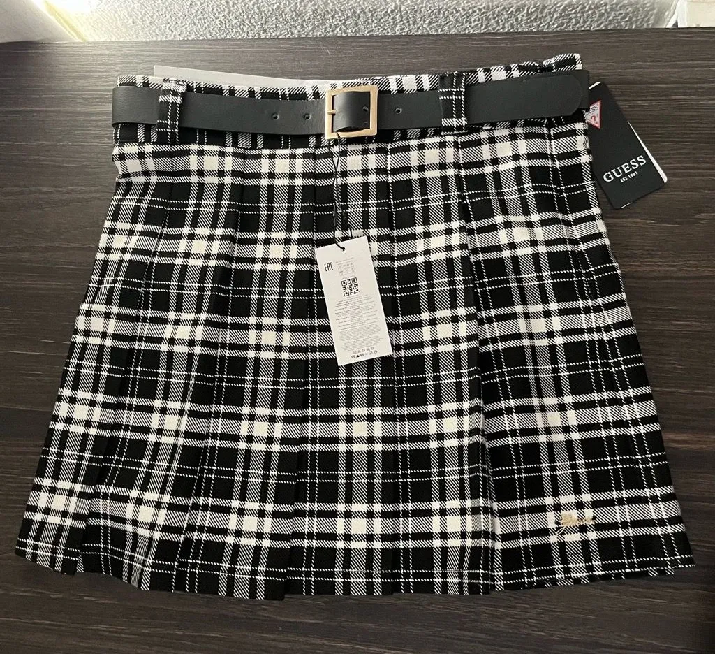 Stylish plaid mini skirt by GUESS. Features a classic black and white pattern. Ideal for versatile s... Show more