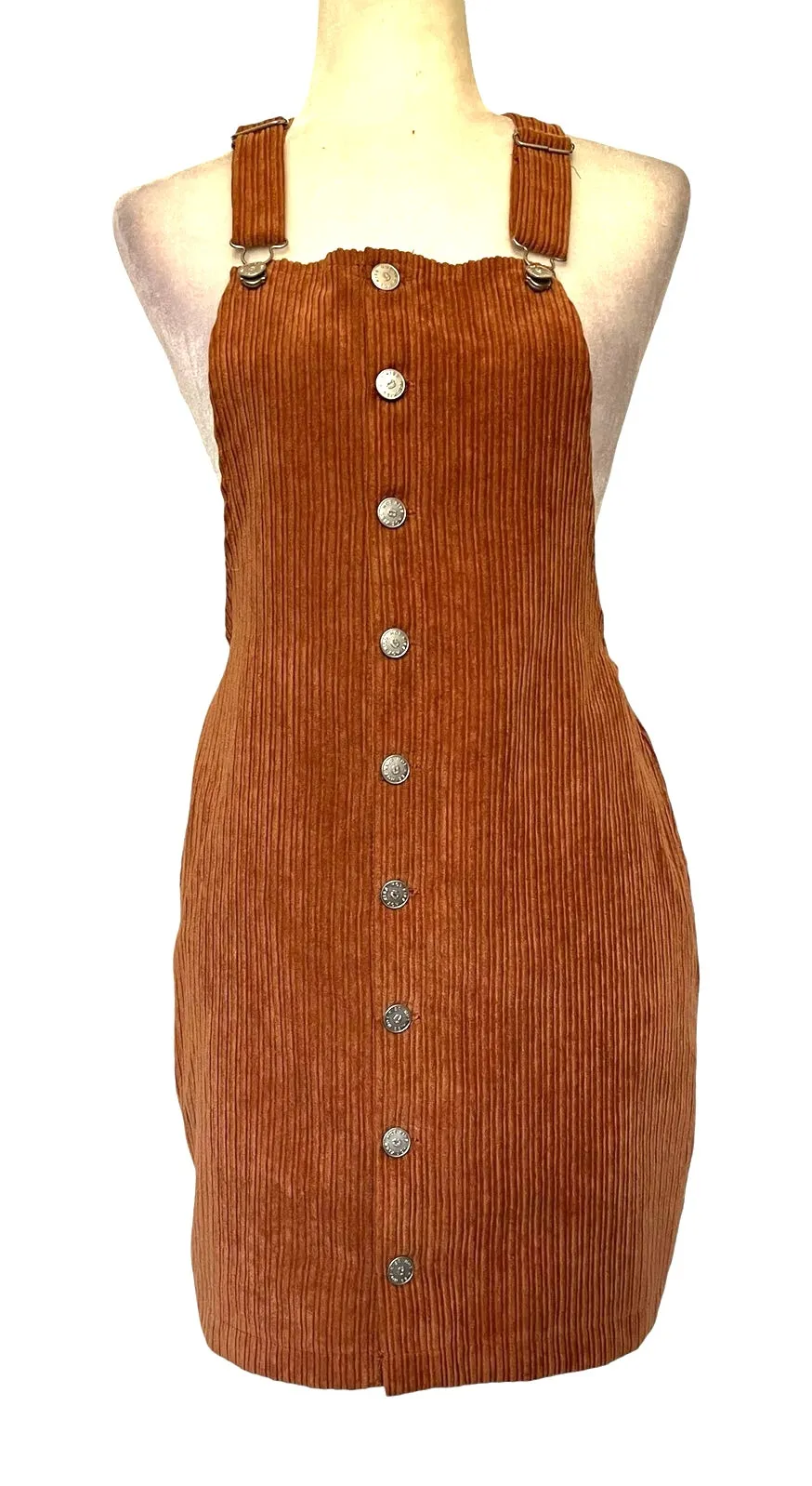 Caramel Brown Hot Kiss Corduroy Jumper Overall Y2K Dress Grunge Academia Full button up in silver to... Show more