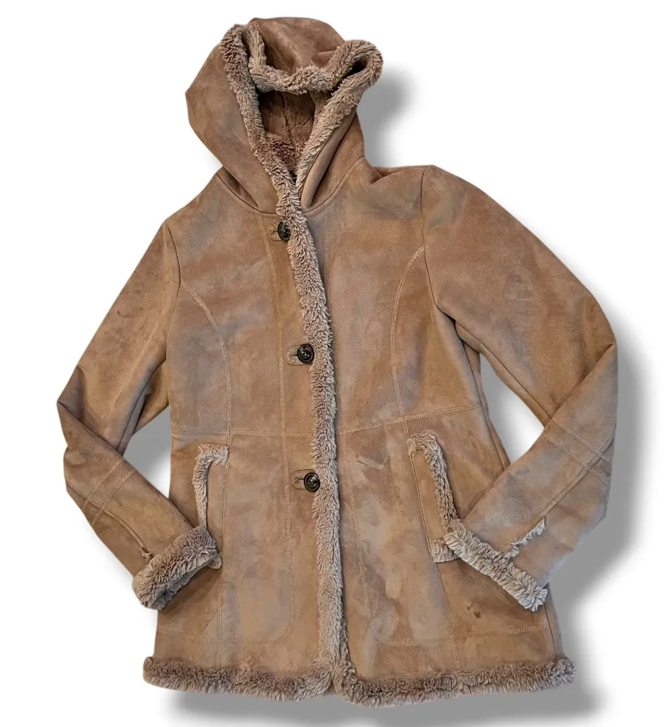Lining feels like Minky!! Sooooo soft!! jones new york Size medium camel faux suede/fur trim long b... Show more