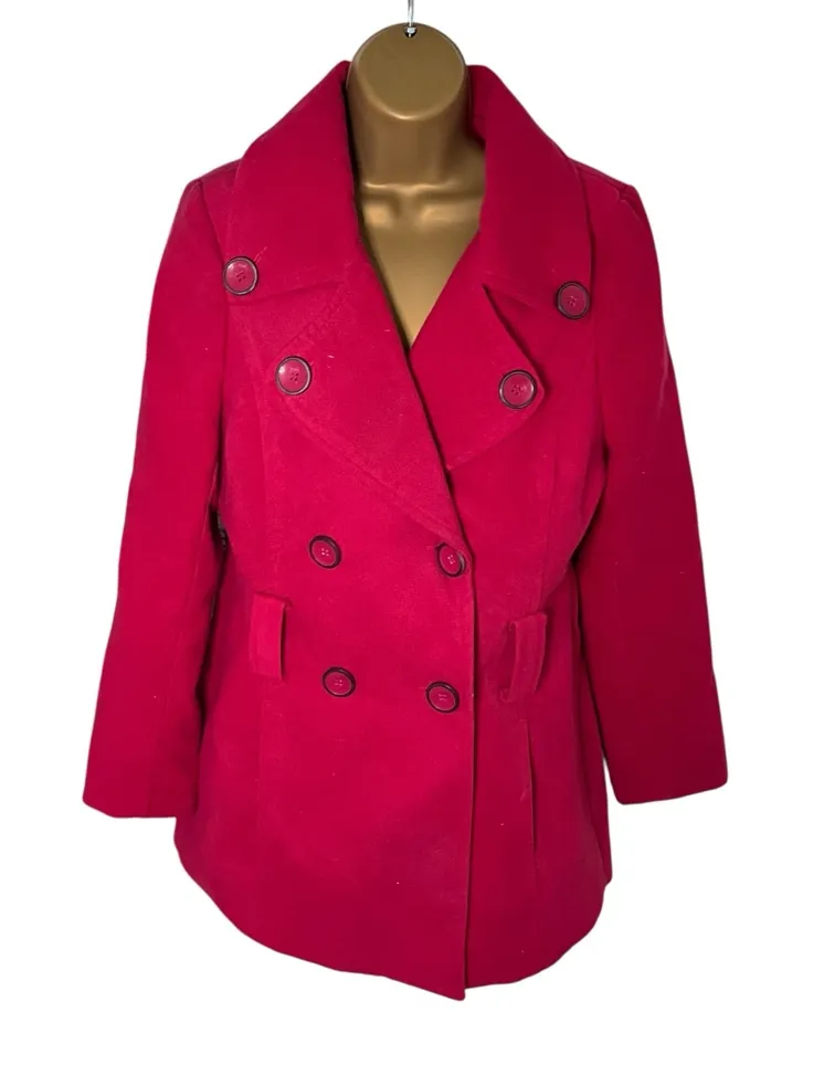 Brand: Jou Jou Features: Double Breasted, Button Front, Belt Loops (No Belt), Structured Fit, Fully Lined, Shoulder Epaulettes, Floral Lining Size: L Juniors Pit to Pit: 20” across Length: 31” Condition: Excellent Pre-Owned with no visible flaws. Belt missing but loops intact. Age: Late 2000s to Early 2010s Color: Magenta Pink Fabric: Shell 90% Polyester / 10% Wool; Lining 100% Polyester with Polyurethane Coating Care: Dry Clean Only Where I Was Made: China Expected Ship Time: 2–3 BUSINESS days Reasonable offers always welcome. Comment any questions. Y2K fashion, coquette, soft grunge, femme, dopamine dressing, street style, casual chic, indie sleaze, mall goth, 2000s vibes, winter layering