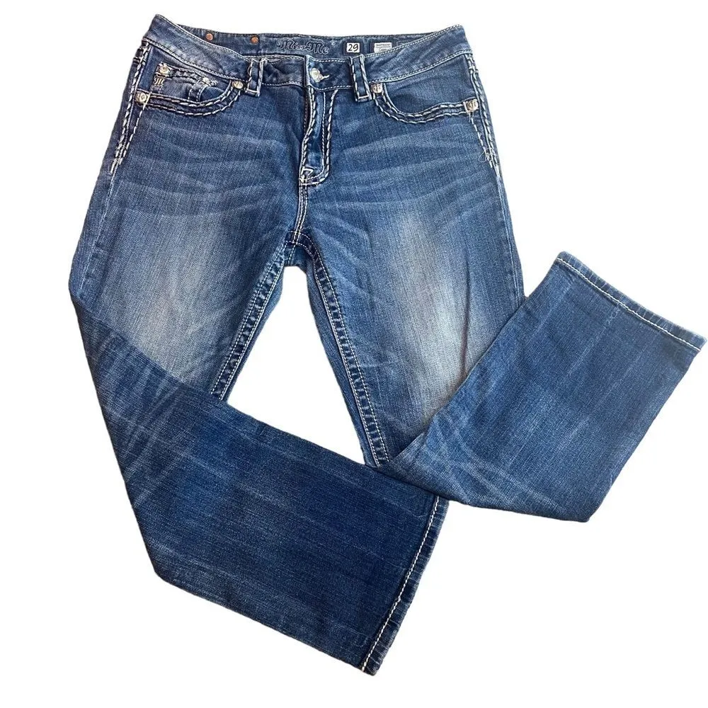 Brand: Miss Me Condition: Gently used- no rips/stains- few threads loose Color: Medium wash with fa... Show more