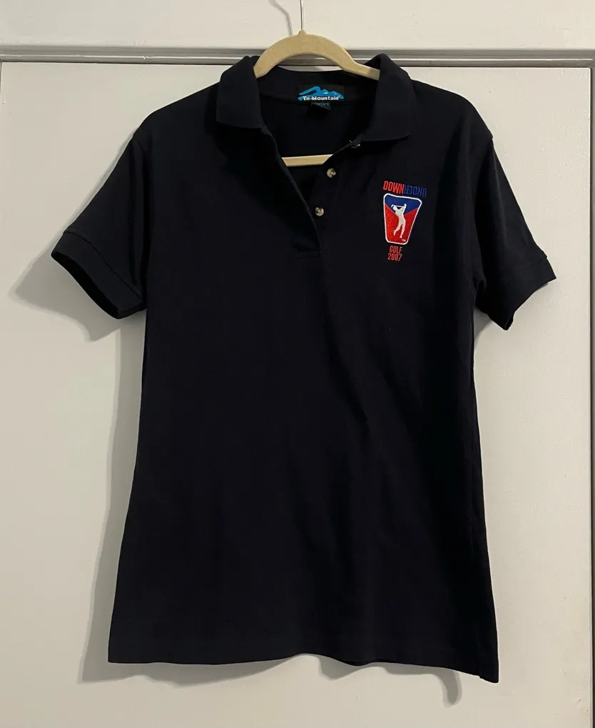 2007 Down Under Golf women’s polo shirt. Short sleeve. Navy blue. Y2K brand Tri-Mountain brand Collectible See approximate measurements and compare to your favorite shirt to determine fit. 27 1/2 inches shoulder to hem 18 1/2 inches pit to pit Australian