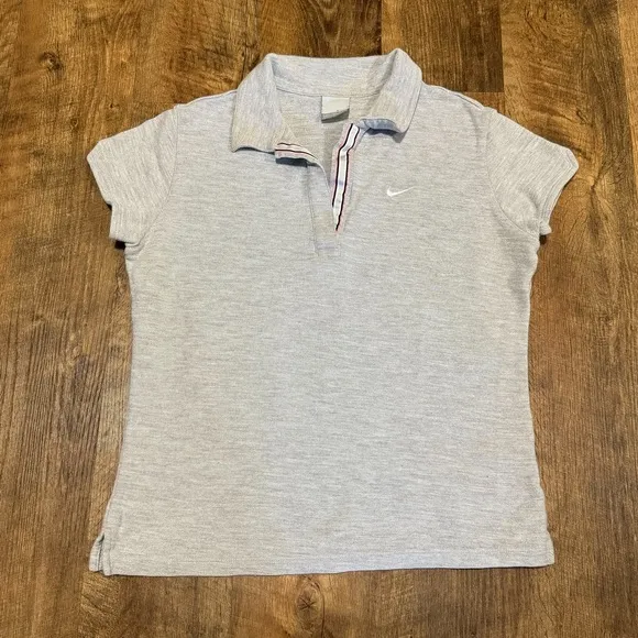 Nike Womens Polo Shirt Sz Large Light grey Polo style Embroidered nike swoosh Contrast stripe on i... Show more