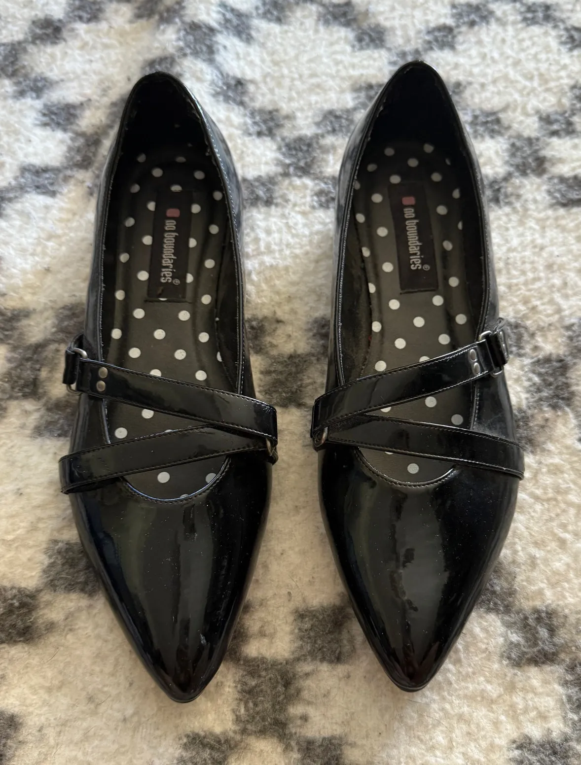 Y2K No Boundaries Black Patent Mary Jane Flats Women’s 9.5 Pointed Toe Shoes Channel early 2000s fa... Show more