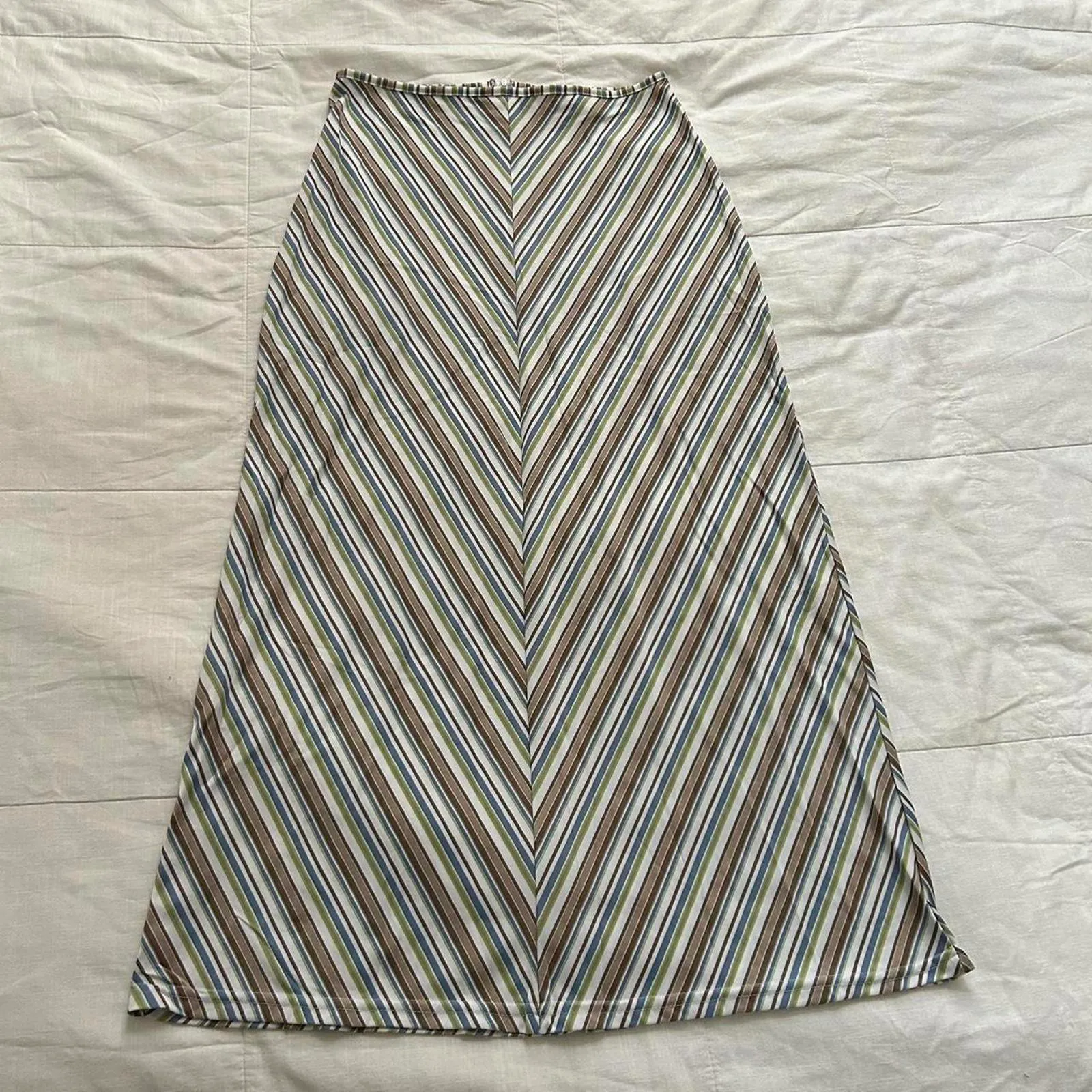 Y2K paper tag vintage blue Brown and white chevron striped maxi skirt. Perfect for 2000s school plan... Show more